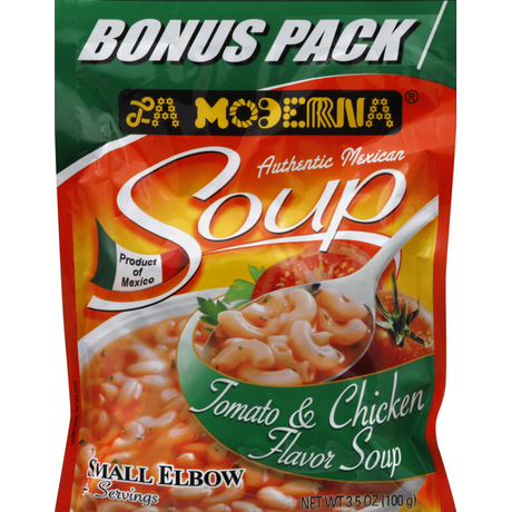 $323Precio unitario /AgotadoSopa de Coditos La Moderna Sabor Tomate y Pollo 3.5 oz. / 100 gr.